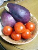 水ナスとミニトマトを初収穫しました。